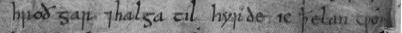 It is one of the most obviously defective lines in the poem. There is no lacuna, no hole in the page, no smudge, just a single line written in a strong, clear hand but defective in grammar, meaning, length, and meter : "hyrde ic þæt elan cwen" (I heard that ela’s queen).